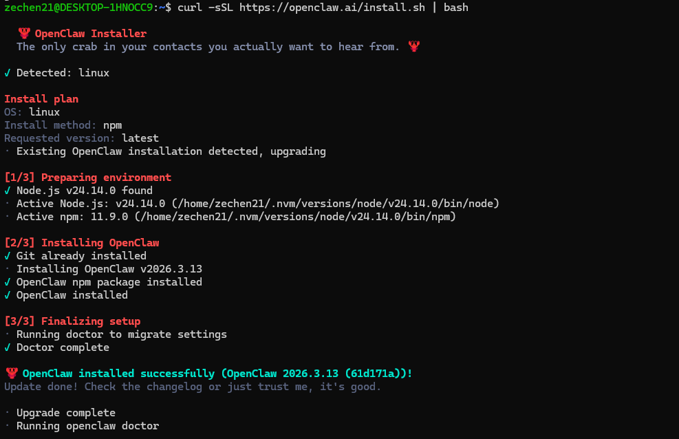 curl -sSL https://openclaw.ai/install.sh | bash