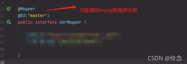 mysql 数据库的查询只需在 mapper 添加注释 @DS("master")