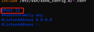 vim /etc/ssh/sshd_config- 取消注释,修改端口